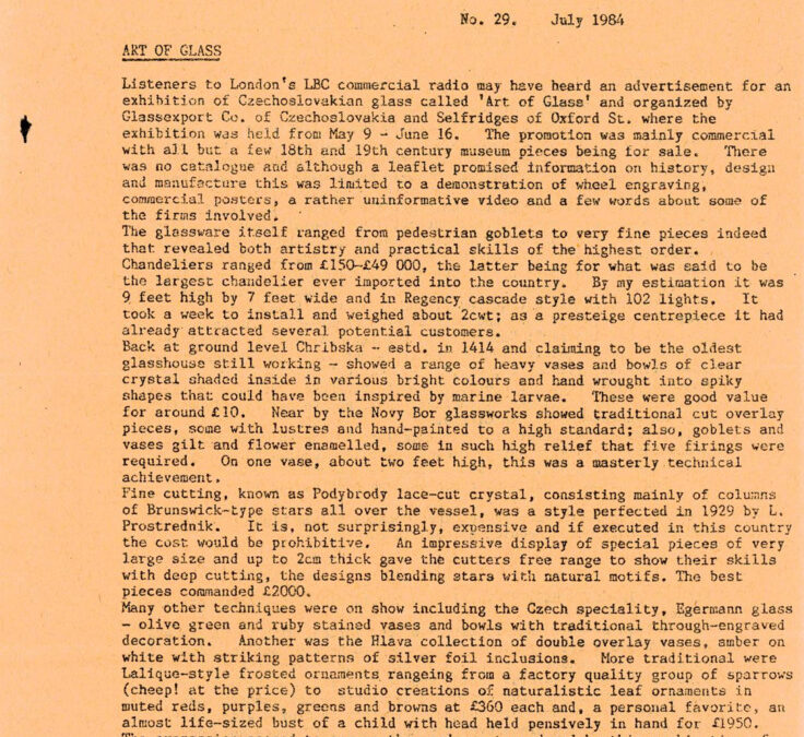 exhibition of Czechoslovakian glass called ‘Art of Glass’ and organized by